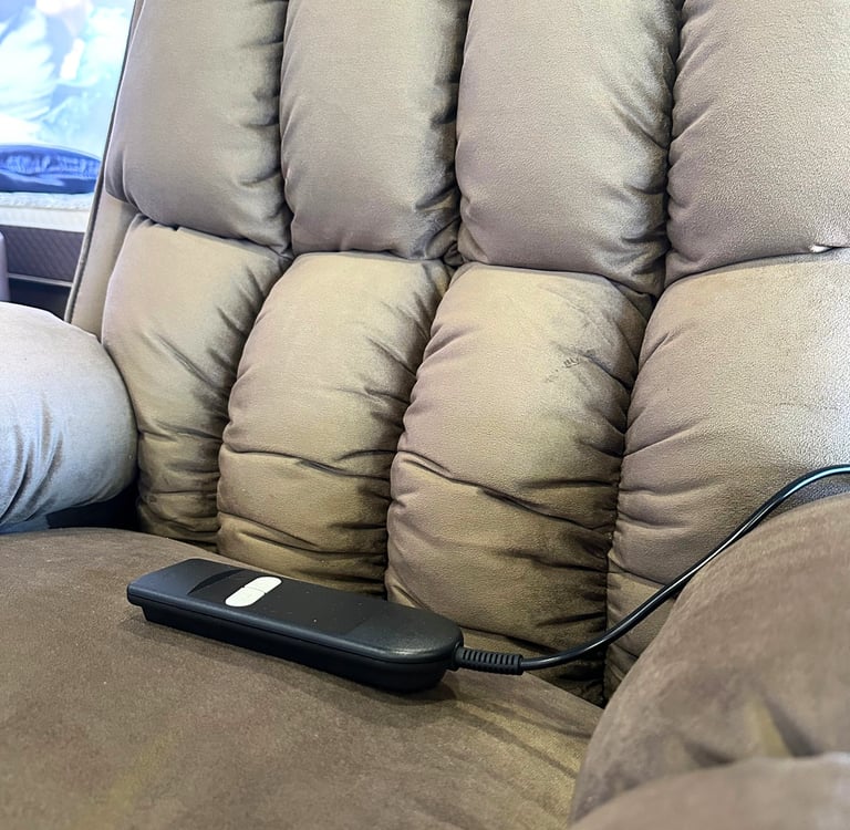 A Poltrona Detroit é ideal não apenas para relaxamento, mas também oferece um apoio essencial para pessoas com dificuldades de locomoção. Seu sistema de elevação e inclinação, acionado por um controle integrado, facilita a transição da posição sentada para a posição em pé, especialmente útil para idosos ou qualquer pessoa que enfrente desafios de mobilidade.